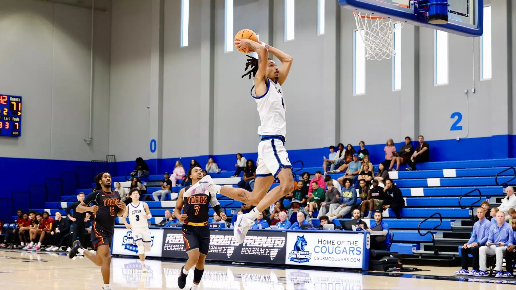 The Cal State San Marcos men's basketball team (13-11, 10-9 CCAA) earned a 76-61 CCAA victory over San Francisco State (3-23, 2-17 CCAA) in its penultimate home game on Thursday night at The Sports Center.