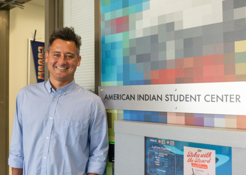 - Alumnus Returns to Nest as Head of New American Indian Student CenterJoely Proudfit arrived as a professor at Cal State San Marcos in 2008 – before she became chair of an American Indian studies department that then didn’t exist, before she founded an on-campus center devoted to California Indian culture and sovereignty. That fall, Proudfit taught a course called “Native American Communities.” It was a small class, featuring only about a dozen students. One of them stood out immediately. Proudfit had known the family of Tommy Devers for years. They are both Luiseño Indians, and Tommy’s uncle is Chris Devers, the former chairman of the Pauma Band of Luiseño Indians, who has deep ties to CSUSM. But that didn’t prepare her for what she would encounter in Tommy. “I noticed his commitment and curiosity right away, but what struck me more deeply was the way he carried himself in service to his community,” Proudfit said. “His hands were always in the work. He showed up for his people with a sincerity that you cannot teach. “There is simply a light to him. My husband used to joke that Tommy should be the mayor of whatever town he happened to live in because he is just that kind of person: engaged, grounded, generous and easy to gravitate toward.” After graduating from CSUSM with a degree in communication in 2009, Devers went on to complete a master’s program in sociological practice, bolstering his connection to the university. During that time, he further immersed himself in Native studies, and even helped Proudfit move into the new California Indian Culture and Sovereignty Center (CICSC). About a year ago, then, when a job as the first leader of a planned American Indian Student Center became available, Proudfit had the ideal candidate in mind. “Tommy,” she said, “was exactly the person we needed.” And Devers was exactly the person CSUSM got. Hired as assistant director in February, the double alumnus spent his first semester observing and developing relationships with American Indian and other students while working out of an office near Proudfit in the CICSC. By late August, he had moved into his new office in the student center, which occupies a suite in the University Student Union that formerly housed the Cross-Cultural Center. This fall, he has overseen five student employees while the American Indian Student Center welcomes in an average of about 20 students per day. Greeting them as they enter is an enormous, wall-sized mural painted by American Indian studies professor Eric Tippeconnic. To make the center more inviting, Devers and his team rebranded it as “The Nest,” both a nod to the center's logo of a feather and a nickname that rolls off the tongue more easily. “This is going to become the nest where students come, they get nurtured, they grow and then they move on in their journey,” Devers said. “So it took on a more symbolic meaning as well. “There's a lot of excitement from the students, and I think they have a strong desire to make this space their own. This is the foundational year. This is when we start being mindful of how we want the center to be, the legacy we want it to have.” The Nest represents the fulfillment of a desire Proudfit has held almost from the day she first stepped foot on campus to give CSUSM’s American Indian students a place they could call their own. Out of necessity, they have congregated over the years at the CICSC on the first floor of the Social and Behavioral Sciences Building. A door opened a couple of years ago when Viridiana Diaz, CSUSM’s vice president for Student Affairs, formed an advisory committee led by lecturer John Tippeconnic, whose report affirmed the need for a dedicated center. The timing lined up perfectly with the availability of Devers, who had moved back to California after some time living out of state and was ready to return to higher education. “He was raised for this kind of work,” Proudfit said. “He is thriving because the job aligns with his spirit, his community roots and his lived commitment to our students.” Devers grew up on the Pauma reservation as the youngest of four children of a Luiseño father and Irish mother. He recalls an idyllic childhood marked not only by normal pursuits such as abundant outdoor play in the rural landscape but also by a stint as an actor. As a fifth-grader, he attended a casting call, which led a trip to acting school, the hiring of an agent and, on his seventh audition, a role in the TV show “Power Rangers.” During middle school, he even moved to Los Angeles for a year with his mom to try acting full-time before concluding that the world of Hollywood was not for him. The sense of adolescent adventure, however, didn’t come without some discomfort related to his identity. “There's definitely some pain that came up because my mom is white and my dad is Indian,” Devers said. “Being half-white on the reservation, you're very aware of your situation at a young age.” After being part of one of the first graduating classes at Valley Center High School, Devers went to Palomar College along with his brother and one of his two sisters. It was a rather aimless period for him. He explored being a photography major. He contemplated becoming an English teacher. He took a semester off to travel, and ultimately stayed at the college for almost four years. “No one who I knew could explain to me what the next steps were,” he said. Devers found direction when he transferred to CSUSM in 2007, and particularly the following year when Proudfit joined the faculty. The American Indian studies discipline hadn’t been created yet, but he took as many classes in that vein as he could. After he earned his bachelor’s degree, Proudfit helped him land a job with the U.S. Census Bureau, for which he leveraged his tribal relationships and cultural knowledge to help boost participation by Native peoples in the 2010 census. The more Devers went 