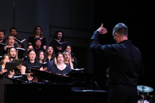 - Grammy-Nominated Music Professor Still Performing and InspiringAfter he stopped touring full-time as a musician several years ago, Aaron Humble increased his pace of sending out feelers to conductors of groups that fly in musicians for a week-long project that often ends in a CD-quality recording. As it often goes, he didn’t hear back from one of the groups he reached out to – True Concord Voices and Orchestra based out of Tucson, Ariz. On a gig months later in Santa Fe, N.M., the Cal State San Marcos associate professor of music was approached by a fellow tenor explaining how a group in Tucson needed another tenor for an upcoming project. Humble booked the trip and enjoyed a week of recording and camaraderie. “The first conversation I had with the conductor was him sort of sheepishly saying, ‘Hey, I’m really sorry that I never responded, but I do really like your audition materials and we’d love to have you sing with the group,' ” said Humble, who is co-chair of the music department and also filling the role of director of the dance studies program. About six years later, a weeklong recording session with True Concord resulted in “A Dream So Bright: Choral Music of Jake Runestad,” which debuted in August 2024 at No. 2 on Billboard’s Classical Albums chart. Three months later, the recording was nominated for a Grammy Award for Best Choral Performance, a realization of a lifelong dream for Humble. True Concord didn't win when the Grammys were held last February. But the experience of recording and, months later, riding the wave of the highest nomination for a recording artist is one that Humble puts high on his list of career accomplishments. And it came with the group that previously had ignored his inquiries. “It’s up there in the top for sure,” said Humble, who has performed at such iconic venues as the Kennedy Center, Lincoln Center and the Library of Congress. “It’s not something you can will to happen because you’re relying on democracy. You’re relying on the members of the (Recording) Academy, the majority of whom I don’t know. And so it does feel like this sort of grassroots recognition of an accomplishment.” In his career as a solo artist, Humble has performed in opera, recital, concert and chamber music venues, enjoying solo appearances with the St. Paul Chamber Orchestra and the Boston Pops. During his tenure singing with Cantus out of Minneapolis, he sang more than 800 concerts and recorded 10 albums with one of the nation’s premier vocal ensembles. CSUSM's School of Arts is making a concerted effort to hire and encourage its faculty to stay active in their respective industries. Ching-Ming Cheng, music co-chair, gives piano concerts both solo and with renowned performers routinely. She just completed a fall series of concerts with cellist Paul Tseng and harpist Vanessa Fountain throughout San Diego County, including on campus and at the California Center for the Arts, Escondido. “Part of it is to feed my artistic soul and sort of keep that fire burning,” Humble said. “Creative activity is part of our scholarship as applied faulty in the arts, so that’s part of it. But in terms of teaching, it also helps me stay relevant. I’m teaching students how to practice, how to perform, and if I stop doing it, I won’t be as good at teaching that.” Originally from northeast Ohio, Humble was the director of choral activities at Minnesota State University, Mankato before coming to CSUSM. A graduate of Millikin University in Illinois, he has a Doctor of Music degree in vocal performance and literature from the Indiana University Jacobs School of Music. Humble and his husband, Xu Zou, have a home in New York primarily for Zou’s work there. Their main residence is in South Park with their two cats, Chopstick and Toothpick. Humble and Cheng are in the process of proposing a music recording and production degree program in the music department. Music technology is currently a minor. “I think that will bring a whole different set of students here as well,” Humble said. “And for the students who are really looking for that ramp into a vocation, into a career, that’s a great degree for them.” His dream is to host a music therapy program at CSUSM. There are no such programs in San Diego, an area rich with the therapeutic power of music. Humble directs the university choir, which is an SATB (soprano, alto, tenor and bass) ensemble that is open to students of all majors and other members of the campus community. The choir does not require an audition. Humble slowly has been building small group opportunities for students who are looking for more advanced repertoire. That’s innovation. For him, it’s about finding the right pace and fit while pushing the students to discover new opportunities within themselves. That’s acceleration and cultivation, the key tenets behind CSUSM’s Blueprint for the Future fundraising campaign, in which the College of Humanities, Arts, Behavioral and Social Sciences lists “Anchoring the Arts” as one of its two initiatives. “I don’t know if we’re quite there yet, but we’re close,” he said. “It’s just nice to give those students who want that extra challenge with harder repertoire, with things that are a little more on the art music side of things and might challenge students in a way that those kids want but other students don’t want. To have space for them to do that.” The concert that the music department is working on this semester is about belonging and unity. Earlier this semester, Humble wasn’t feeling well at choir rehearsal while recovering from getting vaccinated. He ended up having a great rehearsal and left feeling much better. It reminded him that he hears the same from students often. They may arrive to campus in a bad mood but leave their interactions upbeat and ready to go on with their day. Being on the receiving end of that community of care is a gentle reminde