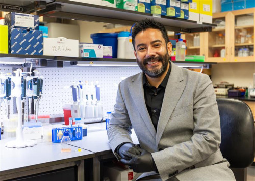 - Biology Professor Researching Breast CancerCarlos Luna Lopez’s typical day in the lab looks a little different from others. Dark, cool and full of machinery like 3D bio printers, the lab is home to petri dishes full of cancerous cells. Inspired by one of his students, his lab cohort is studying breast cancer. “Being in Dr. Luna’s lab has been such a great experience. He’s not only an amazing PI, but also a really great mentor,” said Oscar Loyola Torres, a molecular and cellular biology student. Dr. Luna, a biology professor at Cal State San Marcos, received his bachelor’s in physics from Universidad de Sonora in Mexico and his Ph.D. in bioengineering from the University of Maryland. He decided to pursue his postdoctoral research closer to his parents who live in Mexico, which brought him to the University of California San Diego. Dr. Luna always knew he wanted to pursue a career in the STEM field as his father is a mechanical engineer and his mother a nurse. During his Ph.D. studies, he joined the Summer Program in Neuroscience, Excellence and Success (SPINES) where he met a former CSUSM biology professor who further inspired his move to San Diego and his pursuit of a job at CSUSM. Dr. Luna believes that finding a good balance between research and teaching is important. He explained that one of his biophysics professors would play soccer with his students and invite them to important seminars, creating a meaningful relationship with the students beyond just the research. So when he was told of the community between faculty and students at CSUSM, it felt like the right choice to apply. Dr. Luna has taught upper division cellular and molecular biotechnology classes as well as bio statistics and bioengineering classes at CSUSM since 2017. He also occasionally teaches advanced molecular seminars, and currently he and his lab students are studying the effects of fat cells on breast cancer growth. The tests examine how lipid metabolism is driving parts of cancer growth. Lipid metabolism is the process of creating or breaking down lipids (fats) to help with energy storage, structural cell membrane support and cell signaling. Since breast tissue is full of lipids, it creates the perfect environment for cancer cells to thrive utilizing these functions to their advantage. Dr. Luna and his students monitor the interactions between cancer cells and two different types of fat cells, white and brown adipocytes. These cells work to store energy, produce hormones and regulate body temperature, all basic functions crucial to the success of the human body. Utilizing his background in engineering, Dr. Luna and his students built a device that creates spheroids, 3D circular clusters of cells. The spheroid is made of biomaterials replicating human tissue, allowing the students to get the most accurate results from their cancer research. “There are so many things I get to learn from him and the lab that are helping me grow as both a student and a future physician,” Loyola Torres said. Dr. Luna said this is only a portion of what their research encapsulates. Every time a new discovery is made it opens a door for further questioning, and the research continues. “When you have something in your mind, and you get the chance and the resources to be able to put that into the world it’s so exciting,” Dr. Luna said. Dr. Luna loves watching his students grow and be creative as it reminds him of when he was a kid. Not only does he get to exercise his own creativity, but he gets to bring his students along for the journey. Having watched some of them grow from first years to graduating Ph.D. students, the relationship Lopez has been able to create with his students makes his job all the more rewarding. Media Contact Eric Breier, Interim Assistant Director of Editorial and External Affairs ebreier@csusm.edu | Office: 760-750-7314