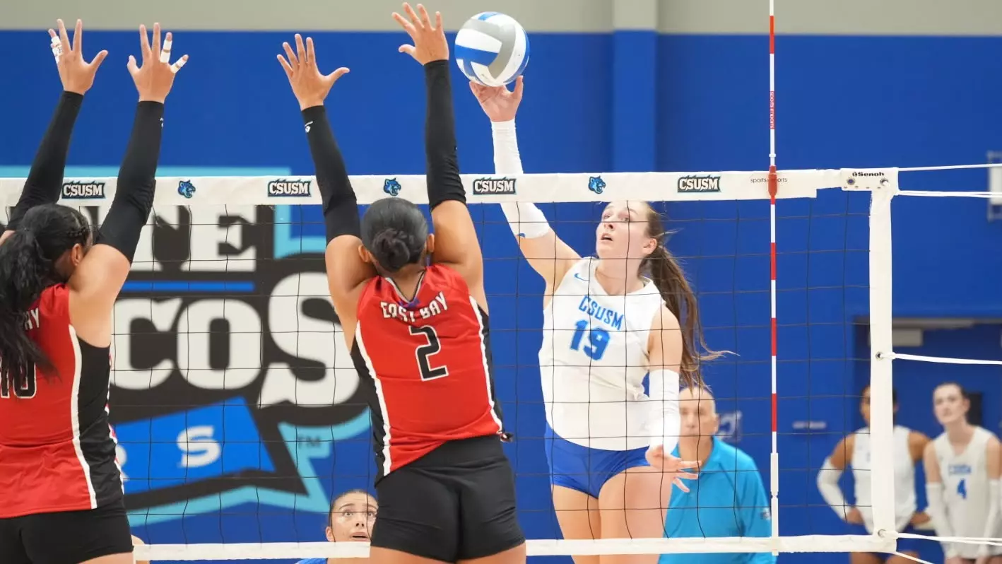 - CSUSM Drops Three-Set Match to CSUSBThe Cal State San Marcos volleyball team (1-11, 0-4 CCAA) dropped a three-set decision (23-25, 15-25, 17-25) to Cal State San Bernardino (8-3, 3-1 CCAA) on Saturday afternoon at The Sports Center.