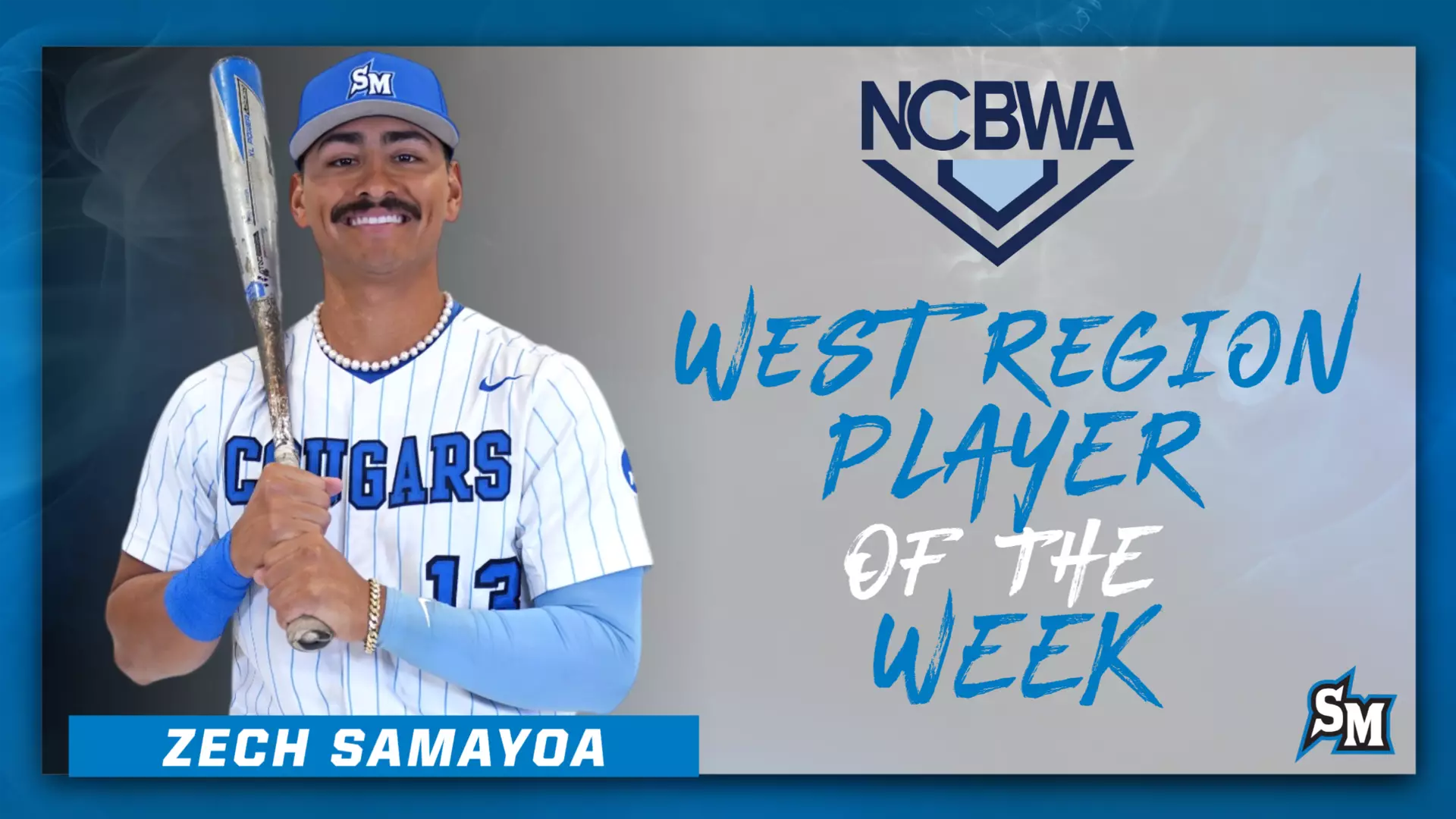 After earning CCAA Player of the Week honors on Monday, Cal State San Marcos' Zech Samayoa has been selected as the West Region Player of the Week by the National Collegiate Baseball Writers Association.